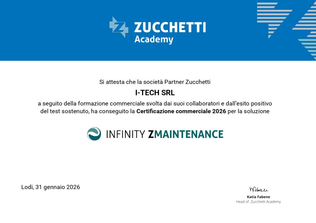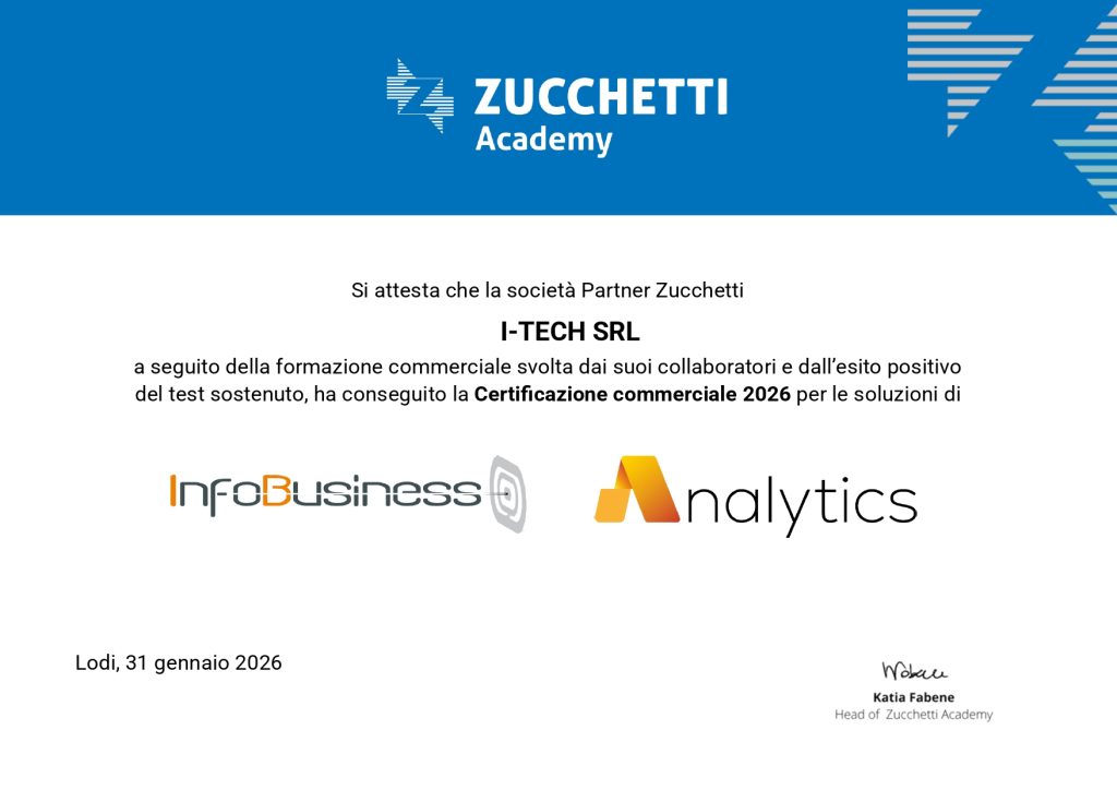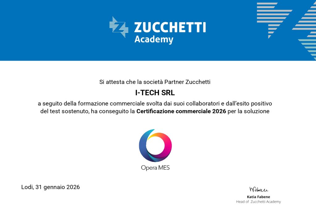 Tutte le nostre certificazioni I-Tech ha al suo interno: 3 consulenti con certificazione commerciale Mago 2 consulenti con certificazione commerciale BI & Analytics 2 consulenti con certificazione commerciale Cyberplan 2 consulenti con certificazione commerciale OperaMES 3 consulenti con certificazione commerciale DocFinance 1 consulenti con certificazione commerciale ZMaintenance 1 consulenti con certificazione commerciale Infinity Coll. Mago (i.Mago) 8 consulenti con certificazione Mago tecnica – applicativa 3 consulenti con certificazione Mago tecnica – PowerUser 2 consulenti InfoBusiness 3 Sviluppatori MagicLink/MagoAPI 3 Sviluppatori Taskbuilder.Net